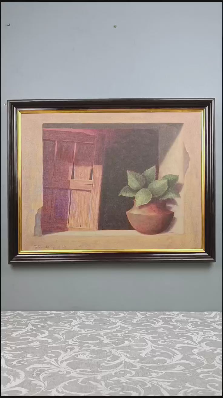 Presentamos una obra firmada en 1990, que exhibe la destreza y sensibilidad artística de Matamala Rivas. La pintura, destaca por su paleta de colores y la meticulosa atención al detalle (características emblemáticas del artista).